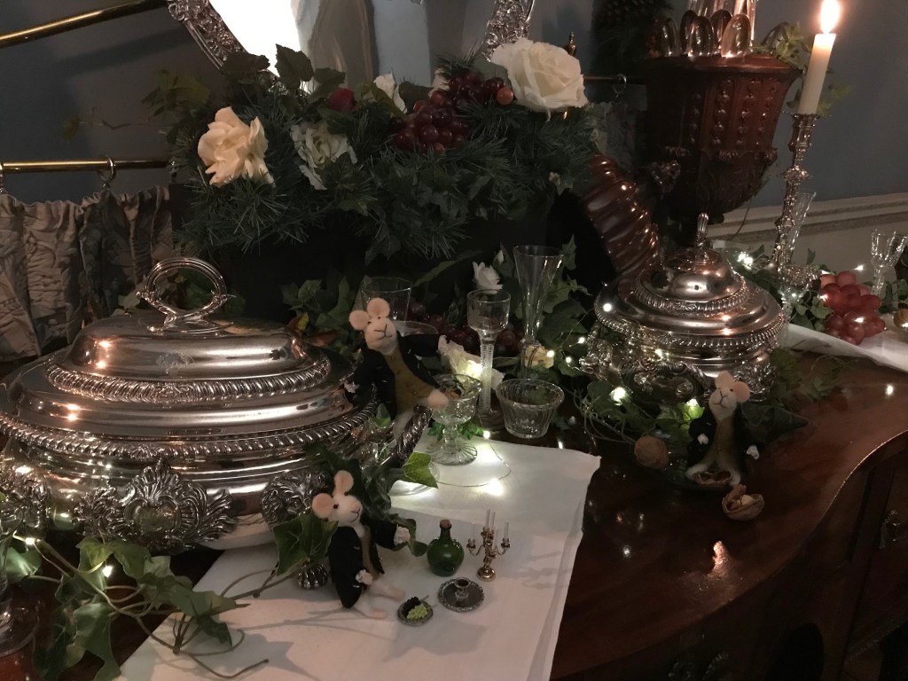 These mice are wearing impressively detailed Georgian clothes, hand stitched by the volunteers at the house. Some are skiing down the bannisters of the marble staircases, some are tucked up asleep in the master’s bed, and some are posing by the classical-style decorations placed on the dinner table. All of them create a magically charming display and help to tell the story of the house.