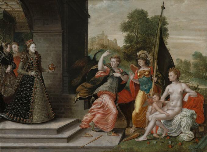 Eworth, Hans. Elizabeth I and the Three Goddesses. 1569. Oil on panel, 62.9 x 84.4 cm. Windsor Castle, London. https://www.rct.uk/collection/403446/elizabeth-i-and-the-three-goddesses.