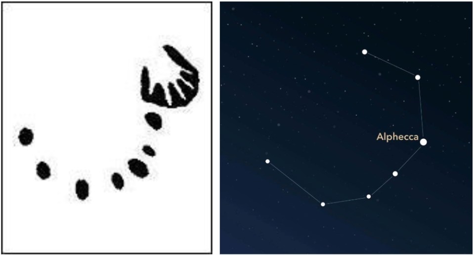 Star Registration. “The constellation Corona Borealis”. Image. Posted by Marc Mayr. Apr 16 2023. Accessed 24th March, 2025. https://www.star-registration.co.uk/blogs/constellations-and-zodiac-signs/constellation-coron a-borealis.