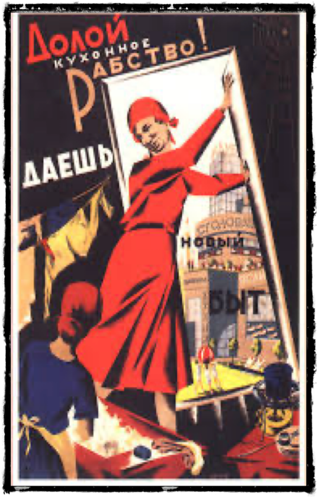Universal History Archive, Soviet Political Poster. Down with Down with kitchen slavery. Hurrah for the new everyday life. 1931. 20.1 x 24.9 cm. Accessed April 15, 2025. https://www.album-online.com/detail/en/YzQxODNiMA/soviet-political-poster-down-kitchen-slavery-hurrah-for-new-everyday-alb10957983.